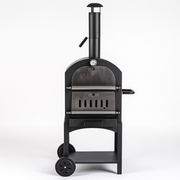 The EmberFlame Compact Wood-Fired Pizza Oven brings authentic wood-fire flavor to small patios and balconies. Built on a rugged wheeled cart with a vented firebox and adjustable chimney damper, it heats quickly and bakes crisp, leopard-spotted pies in minutes. A built-in thermometer and dual door design make temperature control easy for beginners and seasoned cooks alike.